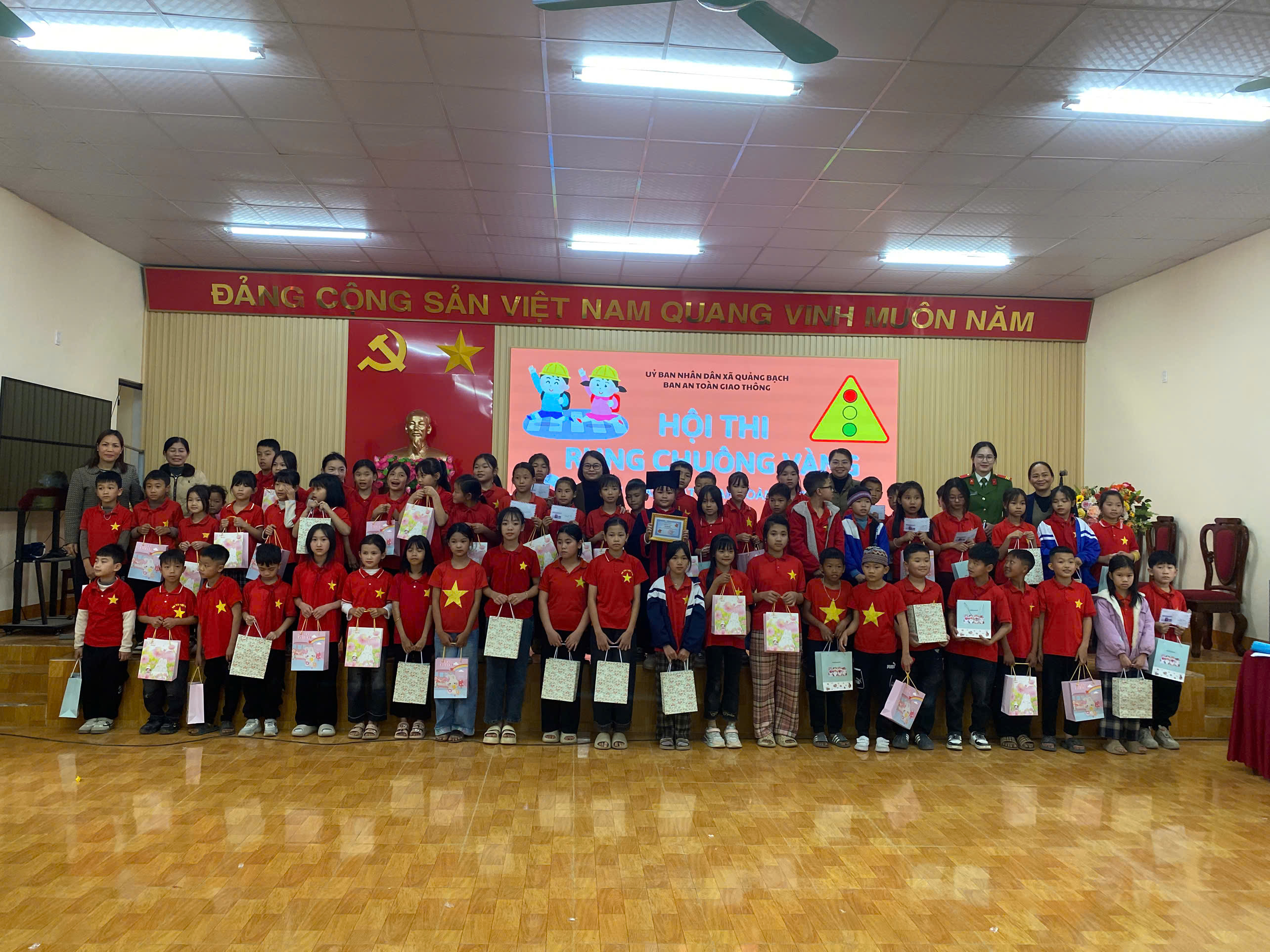 Nhằm nâng cao nhận thức và ý thức chấp hành pháp luật về trật tự an toàn giao thông cho học sinh tiểu học, ngày 29/12/2025 Ban An toàn giao thông xã Quảng Bạch phối hợp với Trường Tiểu học Quảng Bạch và Trường Tiểu học Tân Lập tổ chức cuộc thi “Rung chuông vàng” tìm hiểu pháp luật về an toàn giao thông.