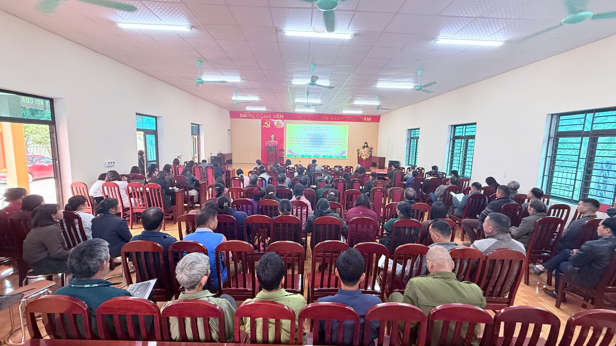 Nhằm cụ thể hóa các chủ trương đường lối chỉ đạo của Đảng và Nhà nước, đặc biệt là Nghị quyết số 57-NQ/TW ngày 24/12/2024 của Bộ Chính trị về đột phá phát triển khoa học, công nghệ, đổi mới sáng tạo và chuyển đổi số quốc gia; Thực hiện Công văn số 216/UBND-KGVX ngày 12 tháng 03 năm 2026 của Uỷ ban nhân dân tỉnh Thái Nguyên về việc mời dự Lễ Khai chương trung tâm dữ liệu tỉnh Thái Nguyên, Sáng 13/3, UBND xã Quảng Bạch tổ chức tham dự Hội nghị trực tuyến tại điểm cầu của xã tại Nhà văn hoá xã Quảng Bạch (thôn Nà Cà). Buổi lễ được tổ chức bằng hình thức trực tuyến tới 92 xã, phường của tỉnh Thái Nguyên. Điểm cầu chính của tỉnh tại Hội trường tầng 2, Trụ sở đoàn ĐBQH&HĐND, UBND tỉnh Thái Nguyên